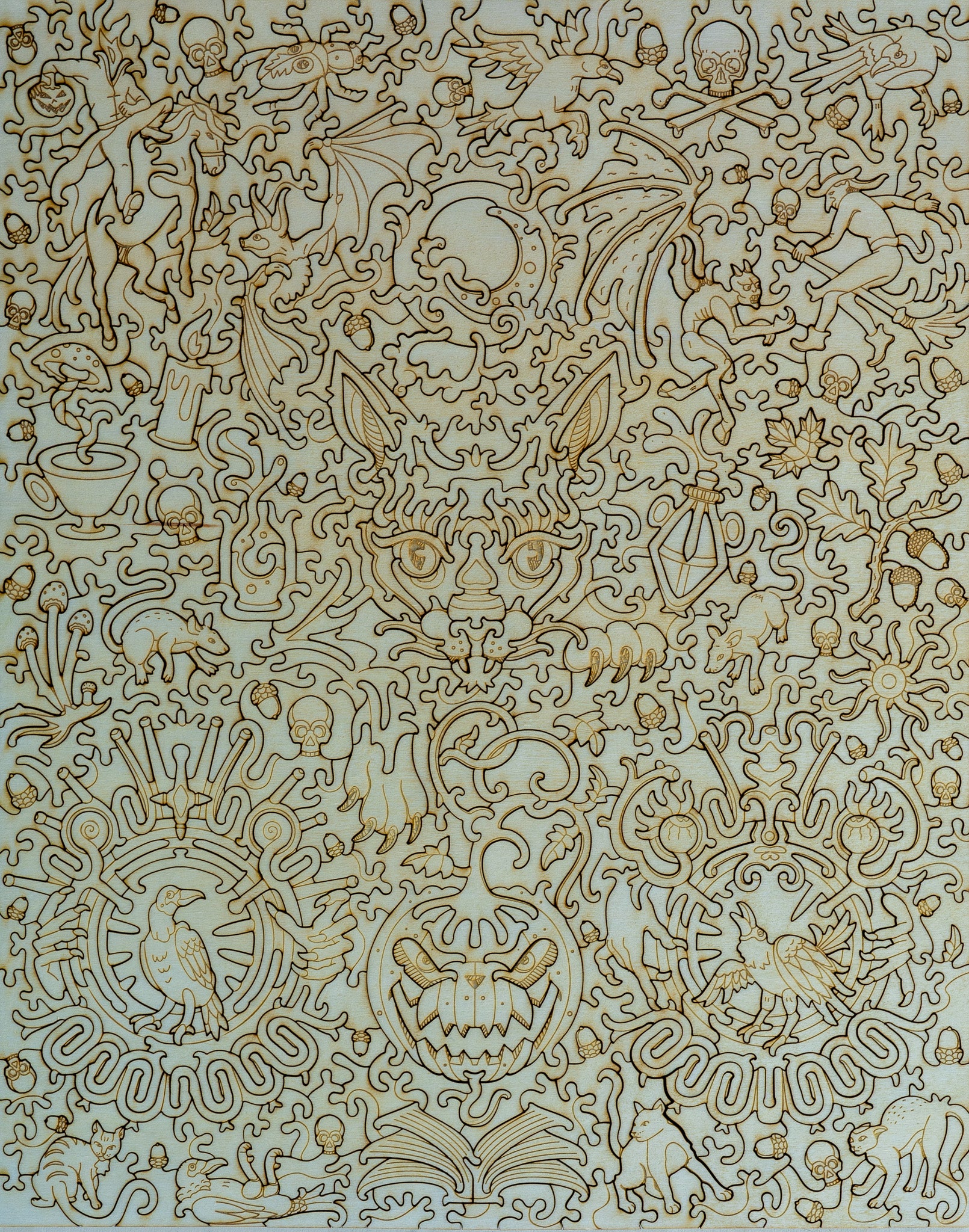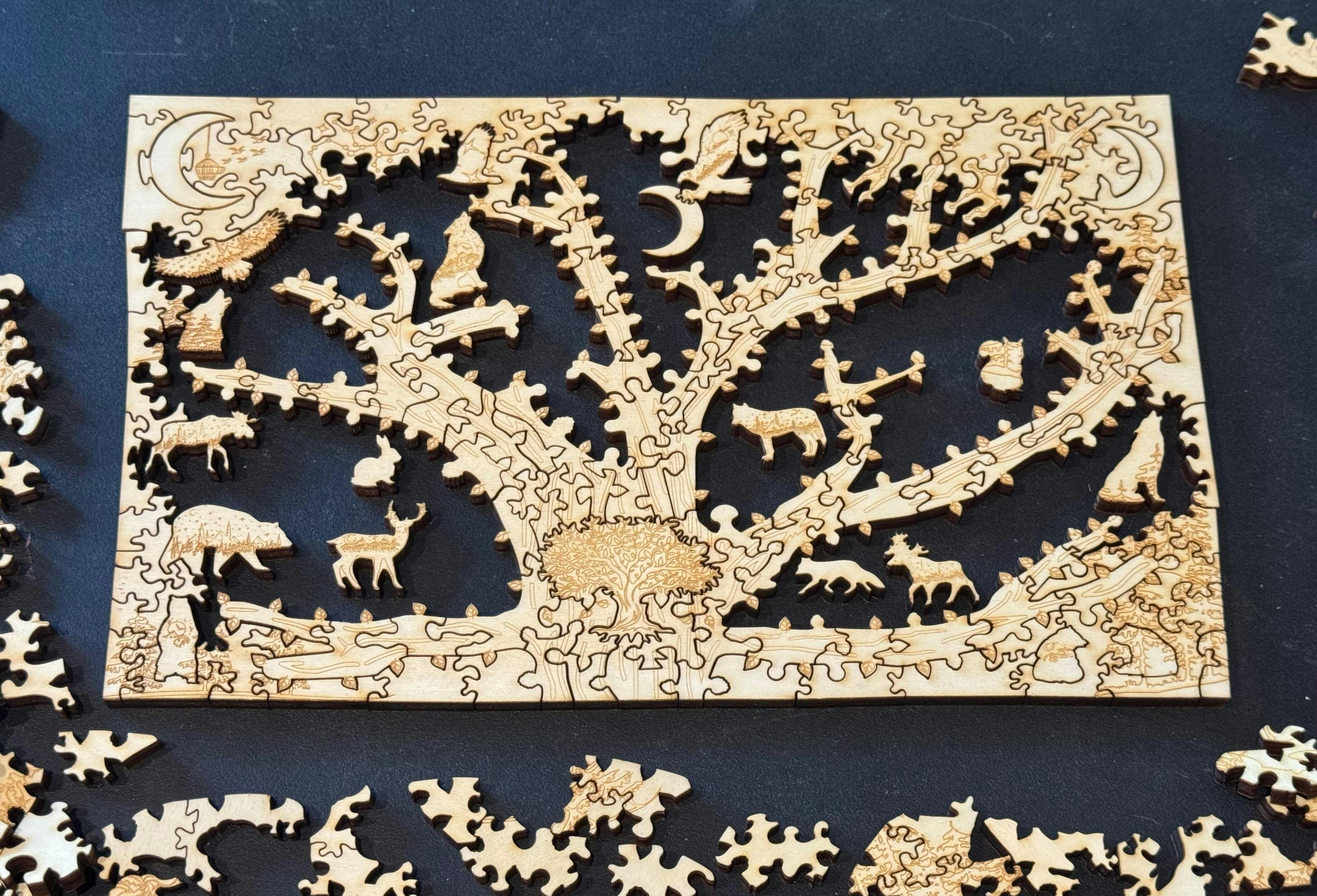 Palmaris Puzzles are made in Canada from premium 6mm poplar wood, with artwork UV-printed on the front and engraved stories on the back. Each puzzle includes hand-drawn whimsy pieces that connect to the artwork, making every build a unique experience. Unlike cardboard puzzles, ours are designed to be replayed, displayed, and treasured for years.