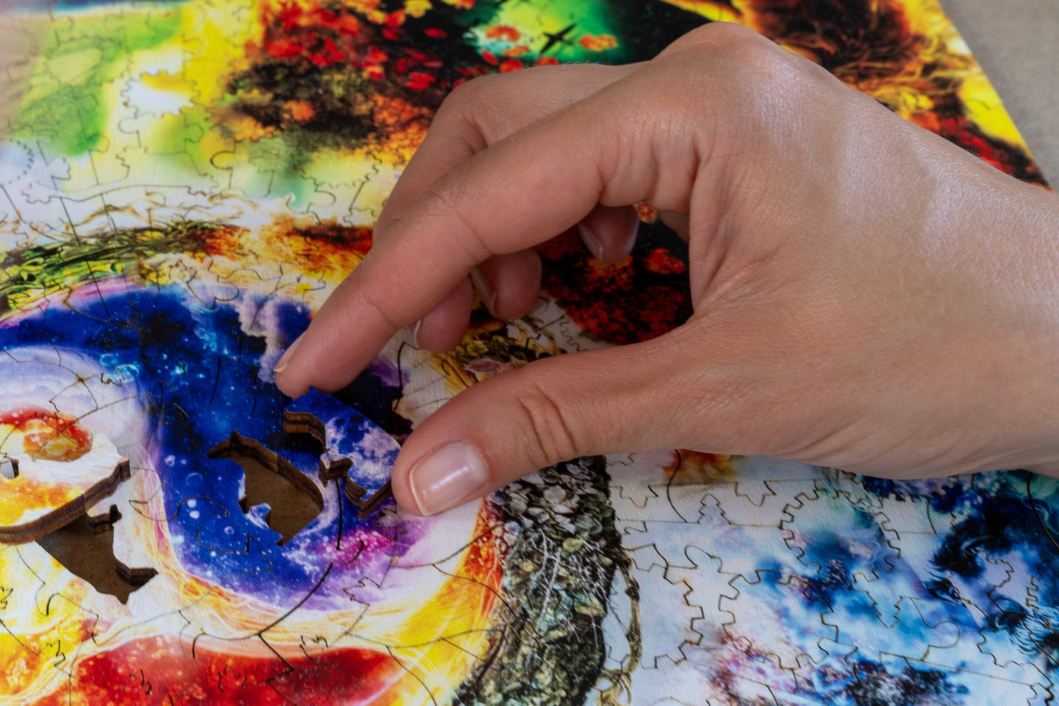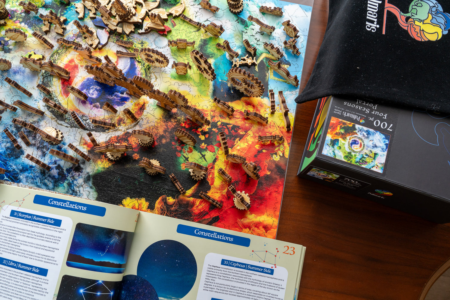Palmaris Puzzles are made in Canada from premium 6mm poplar wood, with artwork UV-printed on the front and engraved stories on the back. Each puzzle includes hand-drawn whimsy pieces that connect to the artwork, making every build a unique experience. Unlike cardboard puzzles, ours are designed to be replayed, displayed, and treasured for years.