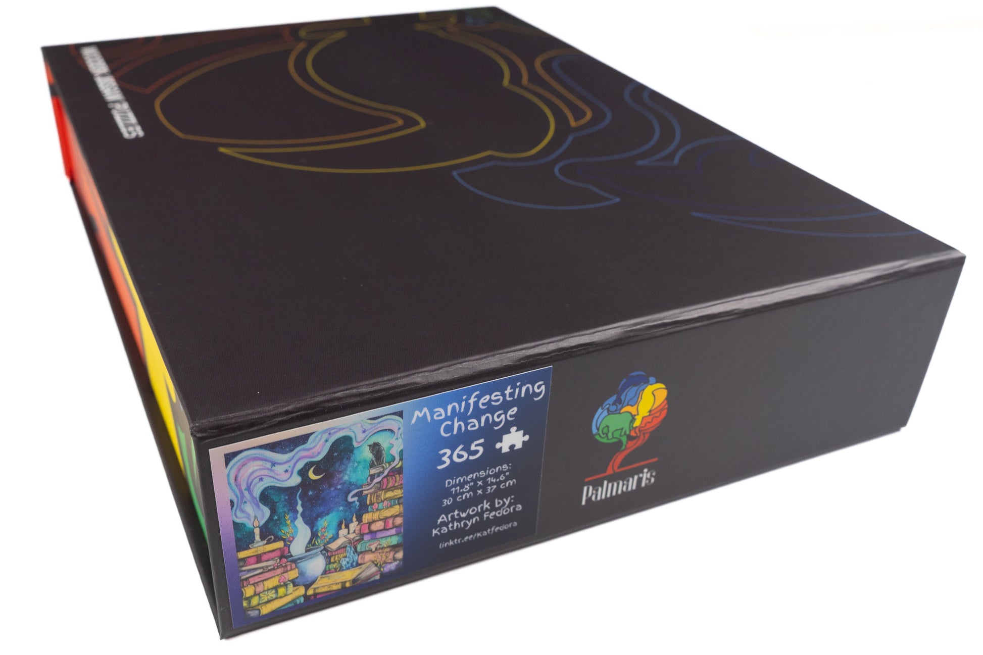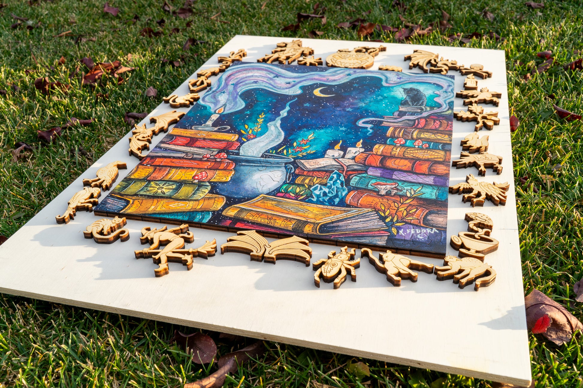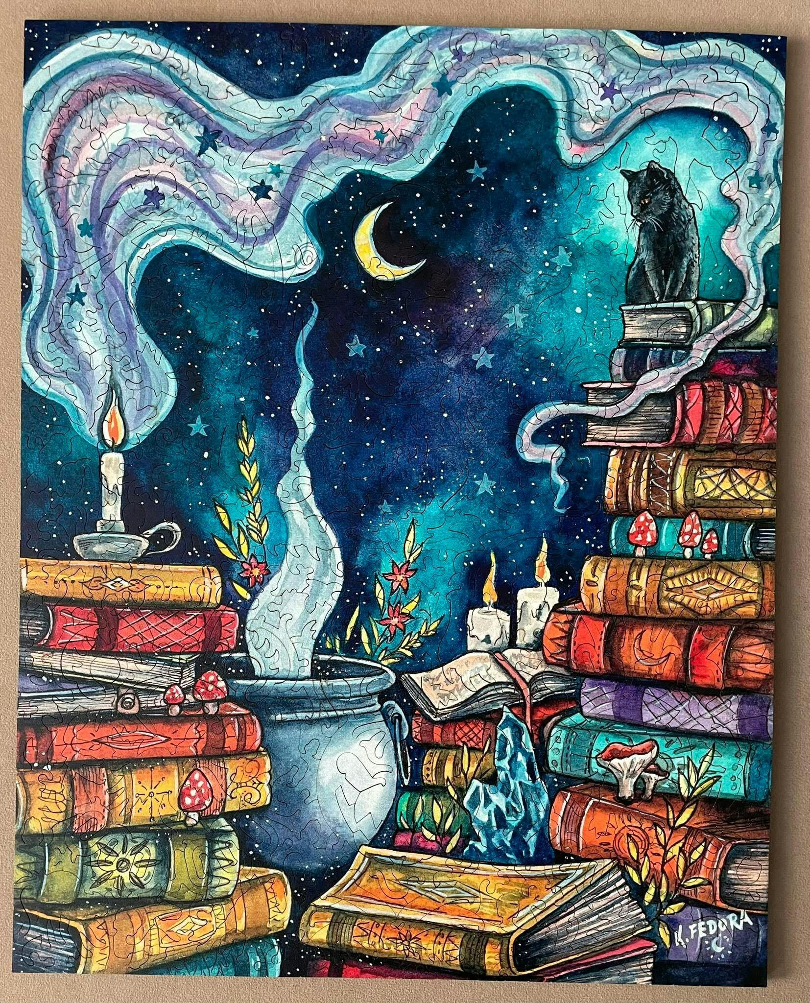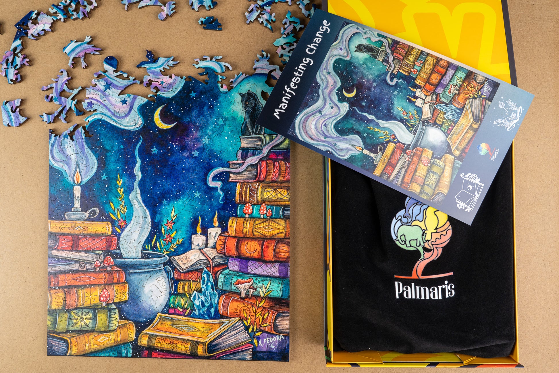 Whether you’re drawn to moonlit magic, cats, or the quiet ritual of transformation, Manifesting Change is more than a puzzle — it’s a spell woven in wood. With its unique double-sided design, it makes a captivating gift for those who believe in the beauty of change and the power of imagination.