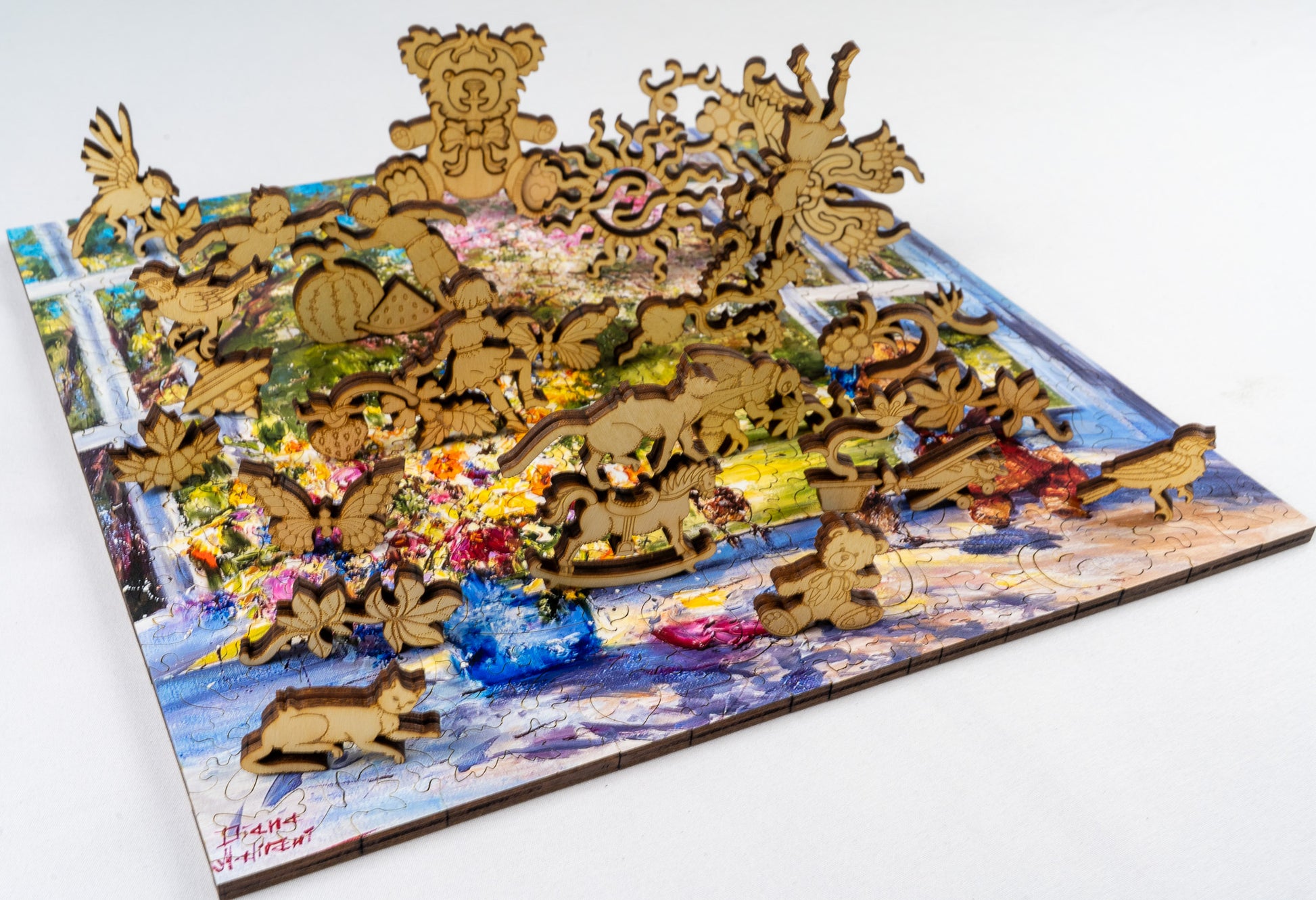 Artwork on the front, engraved story on the back, plus unique whimsy shapes hidden throughout. One puzzle, two sides, endless discoveries.